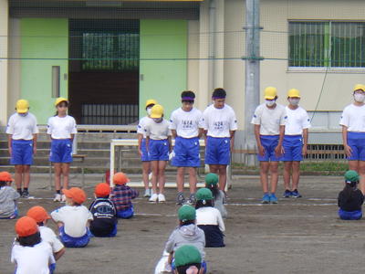 次に、5年生が応援団となり、1~4年生をリードして応援のエールを送りました。