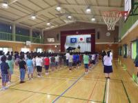 初めに全校で今月の歌「歌えバンバン」を合唱しました。