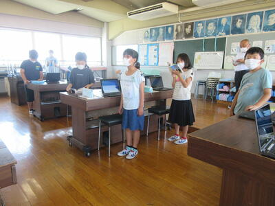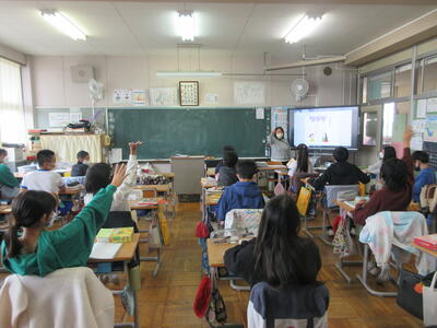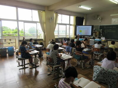 総合でも実際に畑で大豆を育ててみたり、詳しくPCタブレットで調べたりしており、国語の学習とも関連付けて学んでいます。
