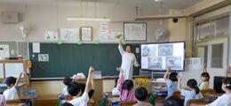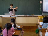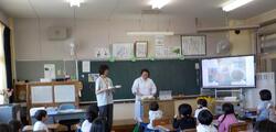 栄養教諭からは明日から始まる給食について、話を聞き、食器の正しい持ち方や牛乳の栄養についても教えてもらいました。