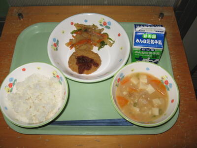 今日の給食では、カツオを細かくし、野菜と混ぜ、揚げたかつおカツです。